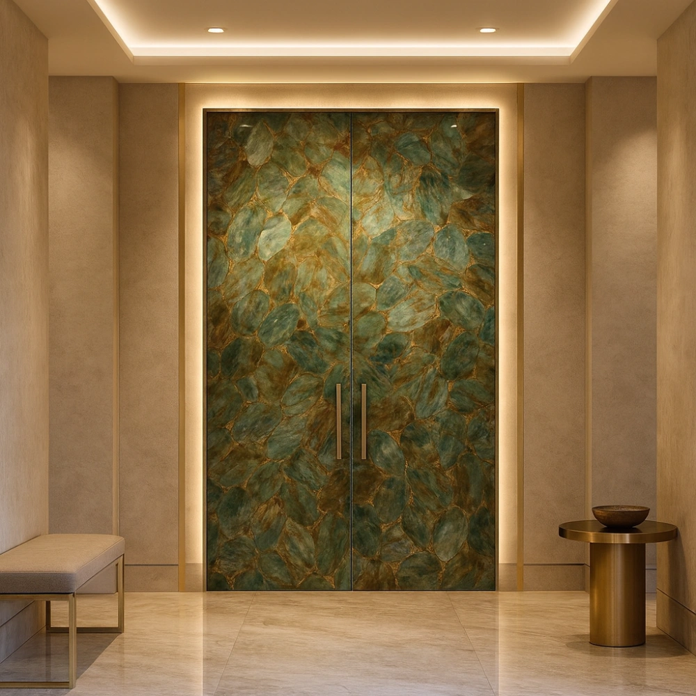 Every gemstone slab carries its own natural pattern, making each door one-of-a-kind with unmatched beauty and depth.